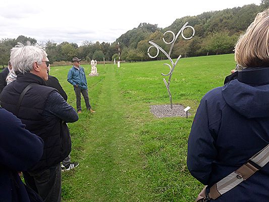Alfred Mevissen stellte mit seinen Künstlerfreunden von ART MOVES EUROPE neue Skulpturen entlang des Wegs vom Karlsgarten zum Teich vor.