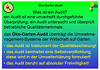 Voraussetzung ist die Anwendung der Methoden des ökologischen Garten- und Landbaus im eigenen Garten und die freiwillige (Umwelt)-Erklärung zu diesen Grundsätzen. Die erste Auditierung wird im nächsten Jahr verbunden mit einem Wettbewerb durchgeführt!