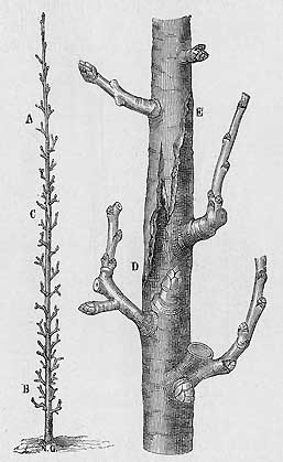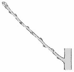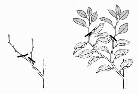 ![]() ______Abb. 10: Behandlung eines Triebes zur Bildung von Fruchtholz |