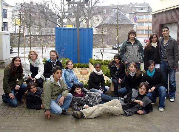 Bis zu 15 Jugendliche und 2 Betreuer pro Stadt legten im Luxemburger Stadtteil Bonnevoie auf öffentlichen Plätzen Gärten an, die das Charakteristische des Gartens Ihrer Stadt wiedergeben. Die Gärten sollen zur Steigerung der Attraktivität des Stadtteils beitragen und als Bereicherung für die Anwohner (grüne Oasen, Treffpunkt, Spielplatz) dienen. Mit dem Karlsgarten stellten wir als typische Pflanze Sempervivum tectorum (Dach- oder Hauswurz) und als „Botaniker“ Karl den Großen vor, der mit der in Kapitel 70 seiner Landgüterverordnung (Capitulare de villis) aufgeführten Pflanzenliste Initiator für die Kräuterheilkunde in Nordeuropa war. Für das Projekt konnten wir Jugendliche von der Städt. Realschule Herzogenrath-Kohlscheid, dem Anne-Frank-Gymnasium und dem Kaiser-Karls-Gymnasium (beide Stadt Aachen) aus den 8. 11. Klassen gewinnen. Seit Dezember 2006 fanden fünf vorbereitende Treffen statt, dabei wurden Ideen für die Gestaltung des Gartens gesammelt und ein Garten für Luxemburg konzipiert. Anfang März wurden vor Ort im Karlsgarten die für Luxemburg ausgesuchten Pflanzen ausgesät. Bei wunderbar sonnigem Wetter in Luxemburg arbeiteten die Jugendlichen mit Elan von Montag bis Samstag am Bau des Gartens. Trotz mancher Sprachprobleme hatten sie dabei mit den Jugendlichen aus Lüttich, Namur, Metz und Nancy eine Menge Spaß. Daneben wurde ein abwechslungsreiches kulturelles Programm angeboten: Stadtführung, Museumsbesuch, Garten in Wiltz, Tanz- und Musikdarbietungen sowie ein Gourmetessen. Untergebracht waren die Teilnehmer in der Nähe der Stadt Luxemburg, im Centre Hollenfels, einem umgebauten alten Chateau mit angeschlossener Jugendherberge, das vom „Service national de la Jeunesse“ als Bildungszentrum für Umwelterziehung und Nachhaltigkeit genutzt wird.