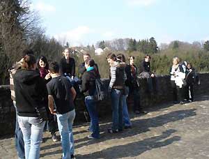 Von dort aus wurden wir wenig später zur Jugendherberge nach Hollenfels gebracht. Dort war erst einmal Betten beziehen angesagt. Eigentlich hätten wir gerne direkt im Château gewohnt wie die Gruppen aus Belgien und Frankreich, aber uns wurden die Schlafräume im Nebengebäude zugeteilt. Dafür gab es bei uns im Haus schöne neue Duschkabinen, im Château nur Gemeinschaftsduschen. Interessant war es, das Château zu erkunden: Durch den Rittersaal gelangte man über eine enge Wendeltreppe in den Turm. Dort entdeckten wir einige Kettenhemden, die wir natürlich sofort anprobierten.