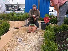 Wieder gab es ein frühes Aufstehen und ein anschließendes Duschen. Danach gingen wir frühstücken und bekamen mitgeteilt, dass wir uns heute die Lunchpakete selber machen mussten, na ja, dachten wir uns, auch gut. Dann, nachdem wir wieder an der Rotunde waren, hat sich unsere Gruppe geteilt. Weil wir mit unserem Garten schon so weit waren, halfen Gereon, Yann, Sabrina, Kyra und Jessica bei den Gärtnern aus Namur aus, die einen riesigen Garten speziell für behinderte und blinde Menschen anlegten, während die Anderen in unserem Garten die restlichen Pflanzen setzten.![]() |
