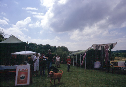 Zentrum des Festes war die Budenstraße hinter dem Karlsgarten. Hier konnte man kunstgewerbliche Artikel, Bio-Wein, -Käse und -Senf kaufen.