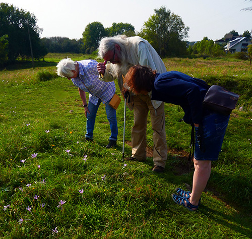 Der Brockenberg ist weniger bekannt, enthält aber alle typischen Arten, die auch in den Galmeirasen am Schlangenberg in Breinigerberg vorkommen. Vor dem typischen graugrünen Galmeirasen überraschte die Teilnehmer aber zuerst ein Massenbestand der Herbstzeitlose.