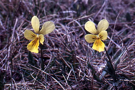 Natürlich durfte das Galmei-Stiefmütterchen (oben) nicht fehlen. Bemerkenswert ist das Vorkommen der Harzer Frühlings-Miere (rechts). Die konkurrenzschwache Pionierpflanze ist auf offene Flächen angewiesen, wie sie auf dem Schlangenberg durch Panzer erzeugt wurde.