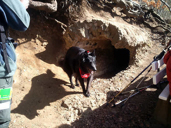 Am 1. April 2012 fand sich eine kleine Truppe zur Frühjahrswanderung in Urft am Westrand der Sötenicher Kalkmulde. Thema war der Vorfrühlingsaspekt in den Buchenwäldern auf Kalkuntergrund. Bevor es in die Botanik ging, haben wir allerdings noch einen Abstecher zur römischen Wasserleitung gemacht, die aus Quellen um Urft herum bestes Wasser zu den vornehmen römischen Häusern nach Köln geleitet hat, und am Ortsrand von Urft -wenige Kilometer von den Quellbrunnen der Leitung- aufgeschlossen ist. Der Hund sieht so aus, als wenn er noch von den Römern zurückgelassen worden wäre, um die Leitung zu bewachen; es ist aber der Belgische Schäferhund eines Exkursionsteilnehmers.