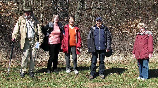Über das Eichtertal führte der Weg über die Höhe zurück, wo das Gruppenfoto entstand. Da der Fotograf naturgemäß auf dem Foto nicht erscheint, unten noch mal die Gruppe mit getauschtem Fotografen.