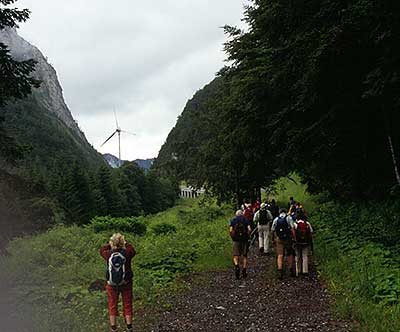 Am 5. Juli ging es zum Einlaufen in einer leichten Tour zum Plöckenpass und zum Gasthof Plöckenhaus. Da es in dem engen Tal nur einen Wanderweg in diese Richtung gab, mussten wir häufiger diesen Weg benutzen. Die engen Täler mit den steilen Hängen sind stark rutschgefährdet, so dass der Weg mehrfach blockiert oder selbst etwas weggerutscht war.
