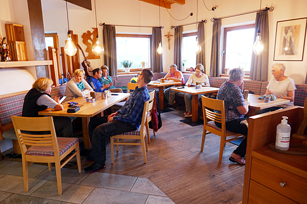 Die Abreise erfolgte nicht ohne, dass vorher das obligatorische Gruppenfoto gemacht wurde. Ehe das Bild im Kasten war, gab es einige Diskussionen über den passenden Hintergrund. Schließlich gab es die Aufstellung vor der Kulisse des zum Teil wolkenverhangenen Schlern. Gegen Abend des Tages waren alle wieder zuhause oder auf dem Weg dorthin.