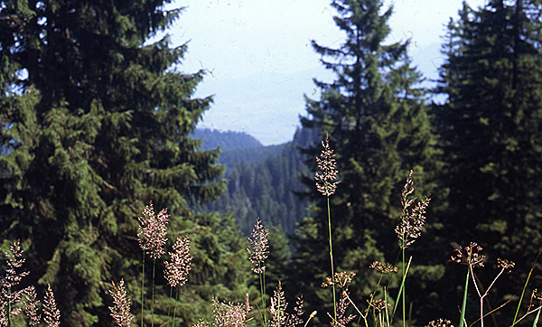 Beherrschende Vegetation unter dem Laber ist eine Hochstaudenflur, deren bezeichnendste Arten der Schabenkraut-Pippau (Crepis pyrenaica, links) und das Wollige Reitgras (Calamagrostis villosa, unten) sind. Sowas ist in Deutschland mal aus den Berchtesgadener Alpen beschrieben worden aber weiter westlich nicht.