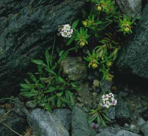 Der Ausflug zum Großglockner und zum Pasterzengletscher fiel buchstäblich ins Wasser. Der Großglockner hüllte sich in undurchdringlichen Nebel (unten links der Blick von der Franz-Josef-Höhe). Wind und Regen konnten hartgesottene Botaniker unter den Teilnehmern aber nicht davon abhalten, den botanischen Kostbarkeiten des Gebiets nachzuspüren. Dazu gehört das Alpen-Breitschötchen (Braya alpina) (rechts).