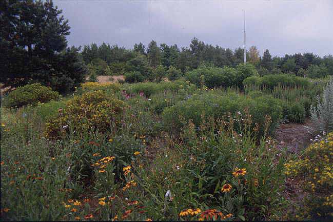 Ein ganz anderes Gartenkonzept verfolgt der Ökologisch-Botanische Garten in Bayreuth, unten die Nachbildung der nordamerikanischen Prärie.