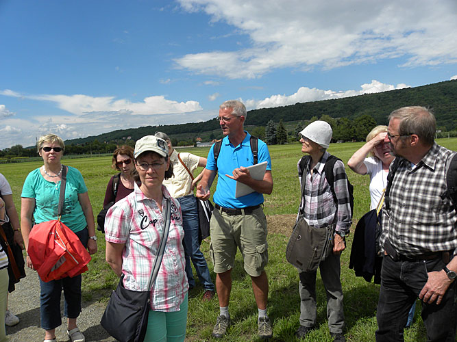 Dr. Mirko Schuster, Spezialist für Süß- und Sauerkirschen am Julius Kühn-Institut (JKI), führte durch das Gelände und gab Erläuterungen zu den Zielen und Methoden der Züchtungsforschung in Pillnitz