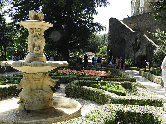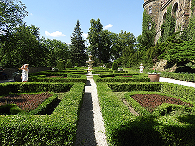Um das Schloss sind Terrassen angelegt mit verschiedenen, formal gestalteten Gärten.