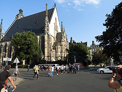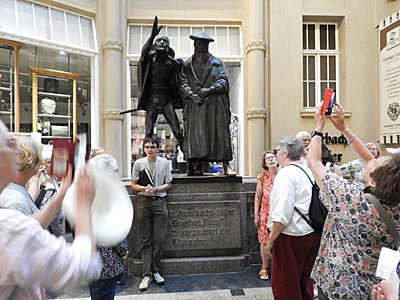 Am Abend hatten wir eine Stadtführung in Leipzig. Eine Station war die Thomaskirche, an der Johann Sebastian Bach wirkte. Die Führung endete zum Essen im Auerbachs-Keller, bekannt aus Goethes Faust wegen seiner Begegnung mit Mephisto.